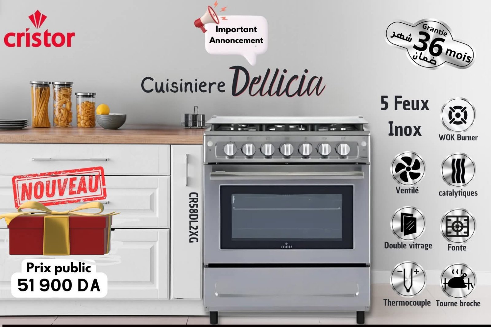 Cuisinière Cristor Dellicia 1 51900 د.ج